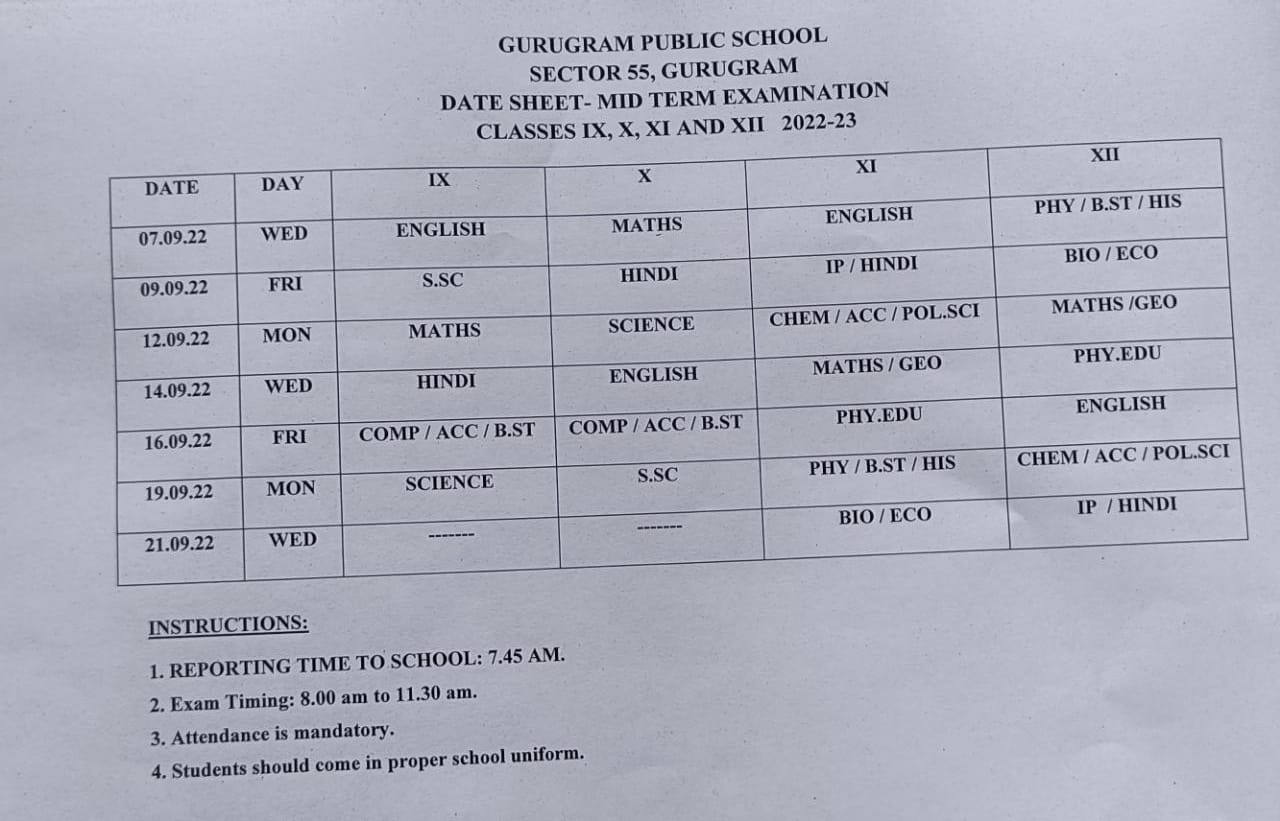 MID Term Examination Class I - VII 2022-23